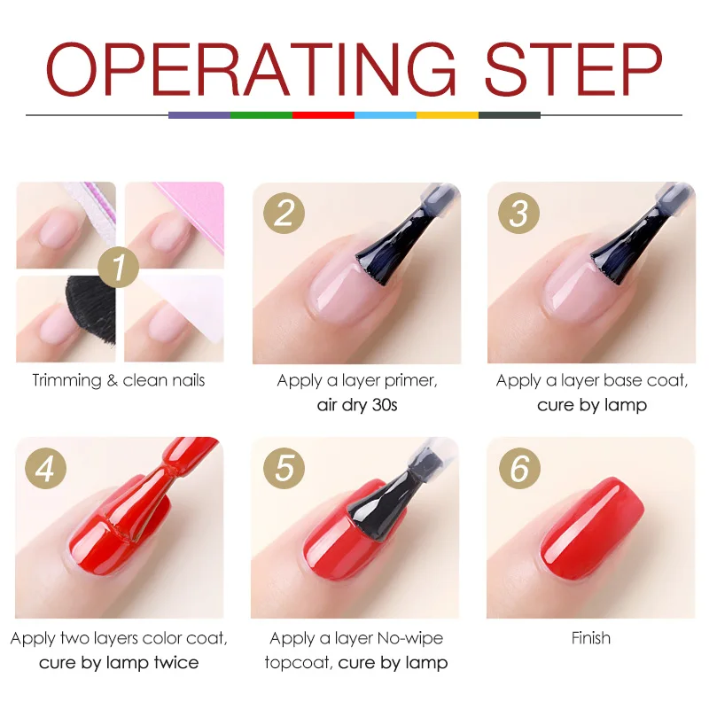 2)Brush a thin layer base coat, curing by UV/LED lamp