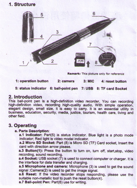 Нажатие кнопки Power включит камеру Pen 007. Дважды нажав Mode, гаджет перейдет в режим диктофона. Сопровождаться это будет горением зеленого индикатора. Кнопка Power теперь осуществляет включение/выключение диктофона. Зеленая лампочка при его включении будет медленно мигать. Каждые полчаса устройство записи успешно сохраняет аудиофайлы на MicroSD.