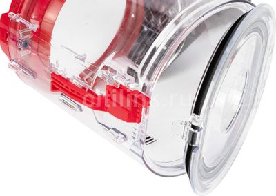 - Фиксатор разблокировки бункера расположен в верхней части циклона, где он соединяется с основным корпусом вашей машины.