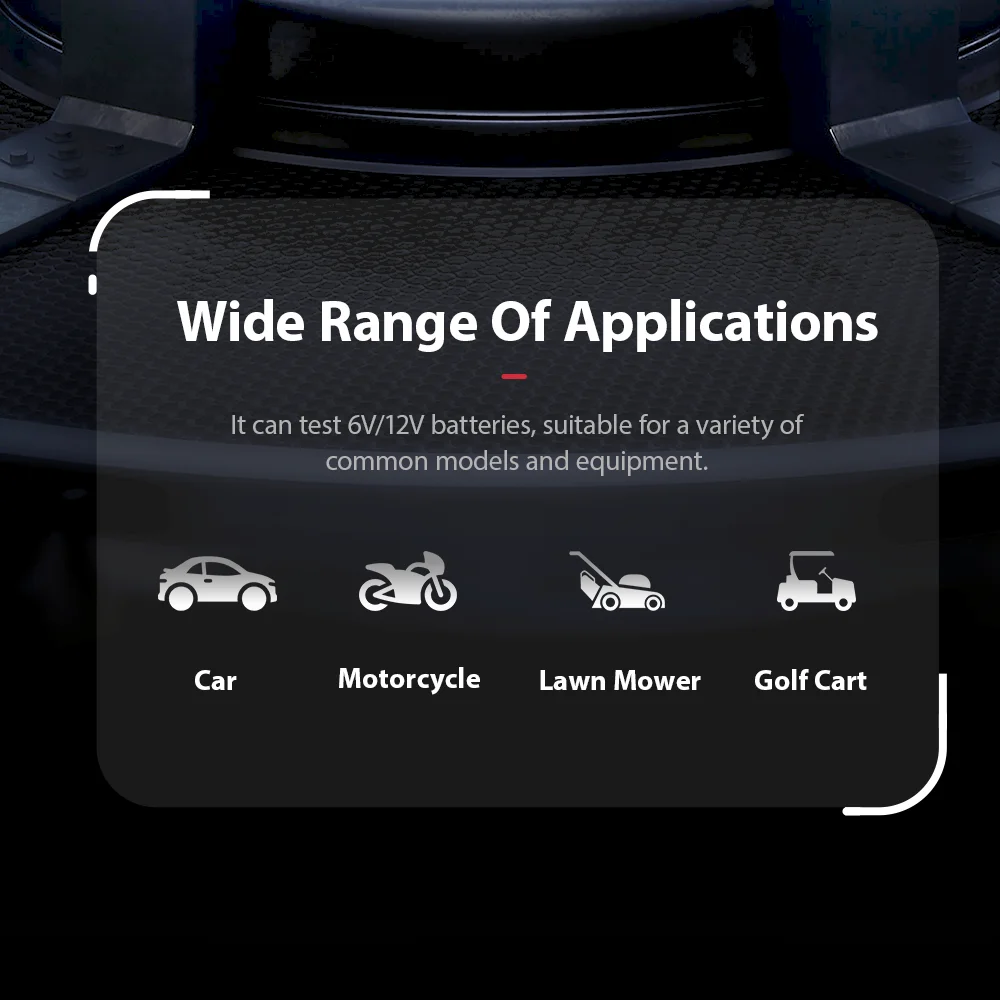 Он поддерживает различные стандарты аккумуляторов по всему миру, может протестировать почти все свинцово-кислотные аккумуляторы для запуска автомобилей и имеет широкий спектр применений.