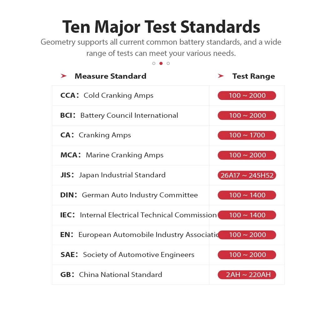 Геометрия поддерживает все текущие стандарты аккумуляторов, а широкий спектр тестов может удовлетворить ваши различные потребности.