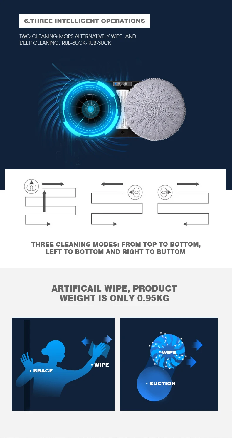 Еще один робот от LIMABEAN. Им можно управлять от пульта или смартфона. Такой мойщик является эффективным против загрязнений и разводах на окнах и стеклах. Умная AI технология выявляет загрязнения на поверхности и вычисляет оптимальный способ их очищения. Изделие держится час, прежде чем потребуется подзарядка. Может работать напрямую от сети.