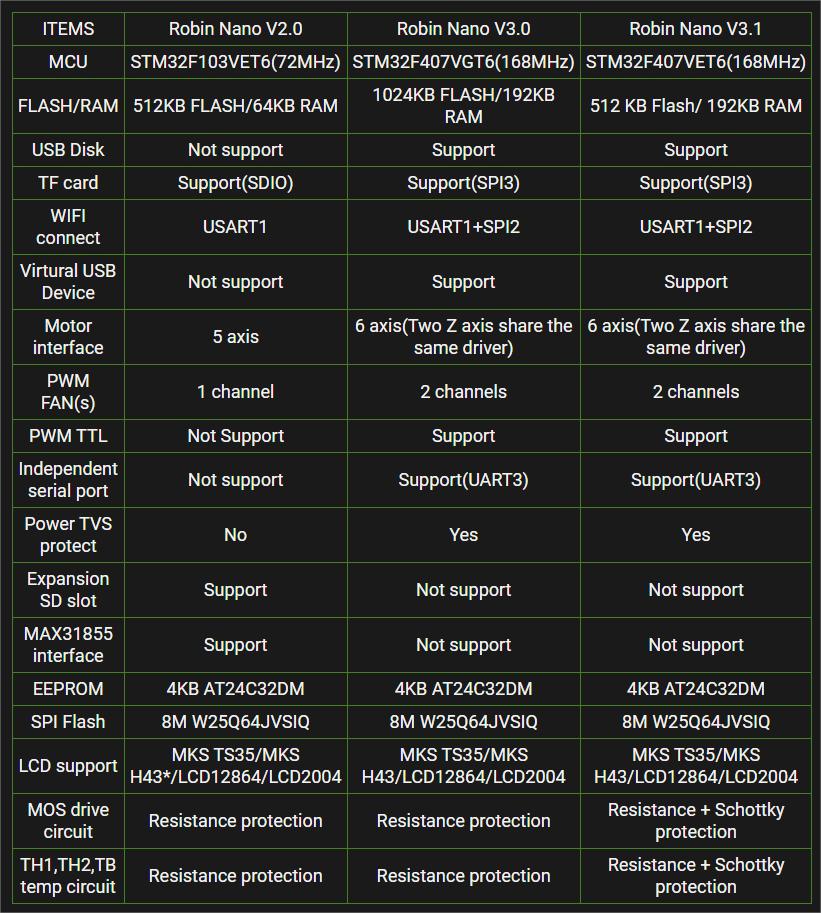 | MKS Robin Nano v3.1 | STM32F407 | F4_RN30 | Robin_nano_v3.bin | |