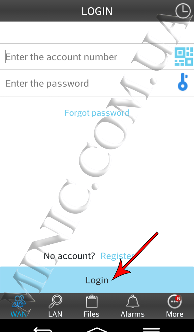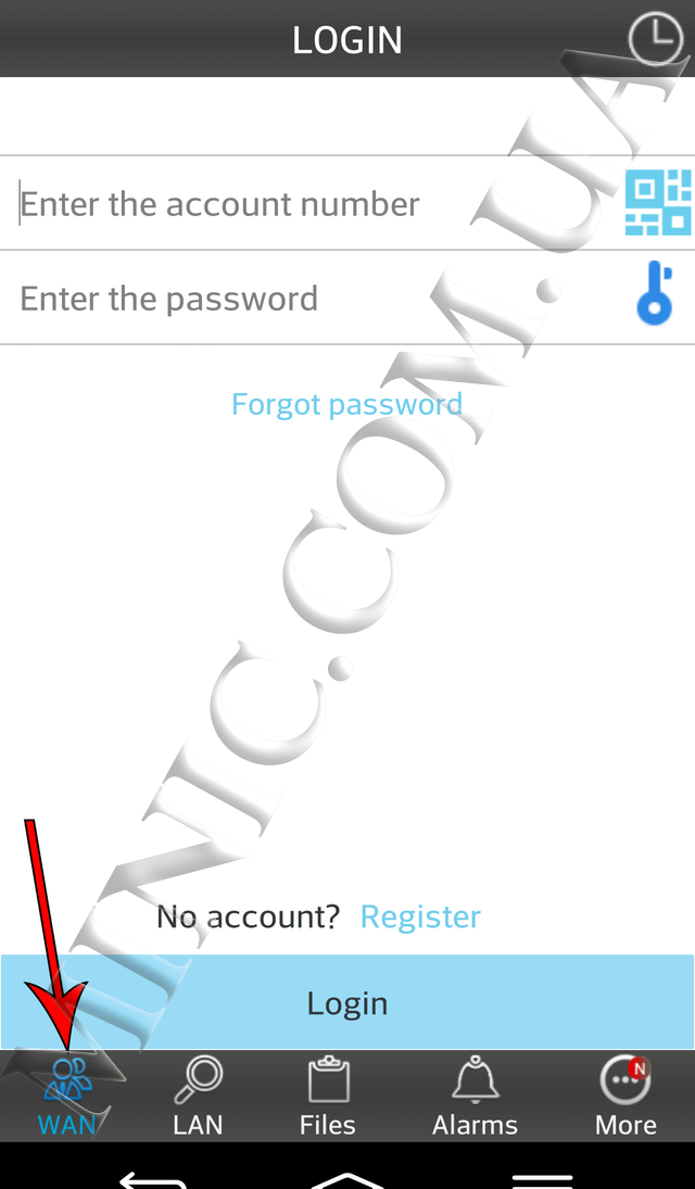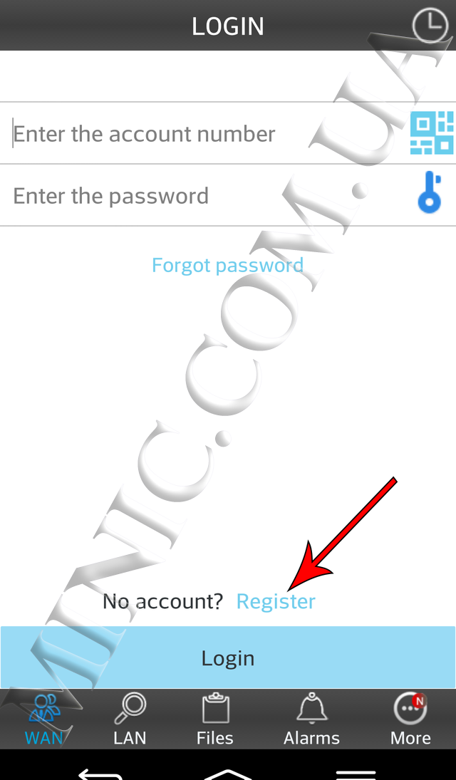 Зайдіть в додаток на Вашому пристрої для перегляду трансляції. Виберіть розділ WAN і натисніть кнопку «Register». У вікні необхідно ввести ID камери і пароль з обороту Вашої wi-fi міні камери, а так само Ваш E-mail.