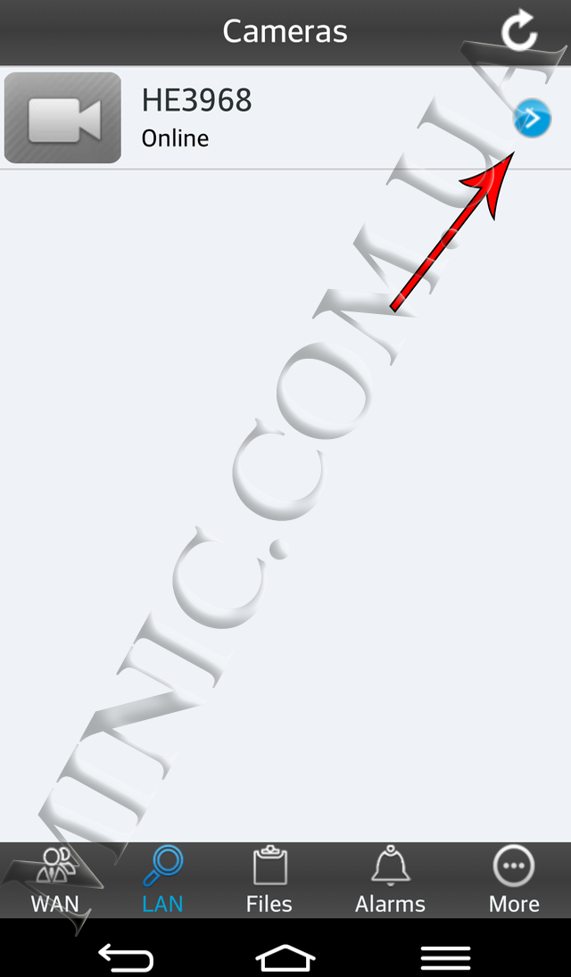 - 6. Выберите раздел LAN или Local Cameras и в открывшемся списке выберите мини видеокамеру с идентификатором CamID, который написан на обратной стороне корпуса Wi-Fi видеокамеры MD81S.