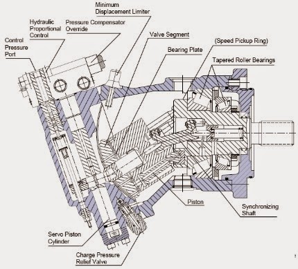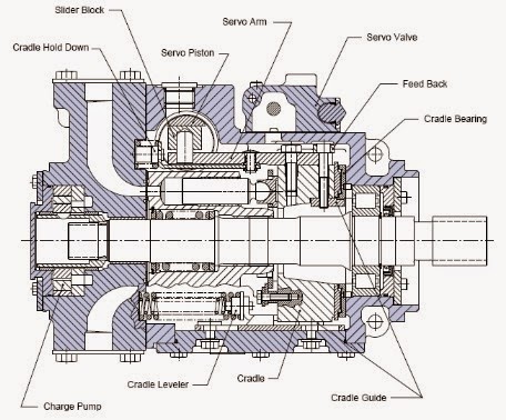 Обратитесь к картинке насоса (вид в разрезе) из руководства Sauer по обслуживанию аксиального поршневого насоса.