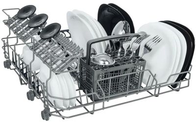 2.Ножи и другая посуда с острыми концами должны загружаться в корзину острым концом вниз, либо располагаться горизонтально.