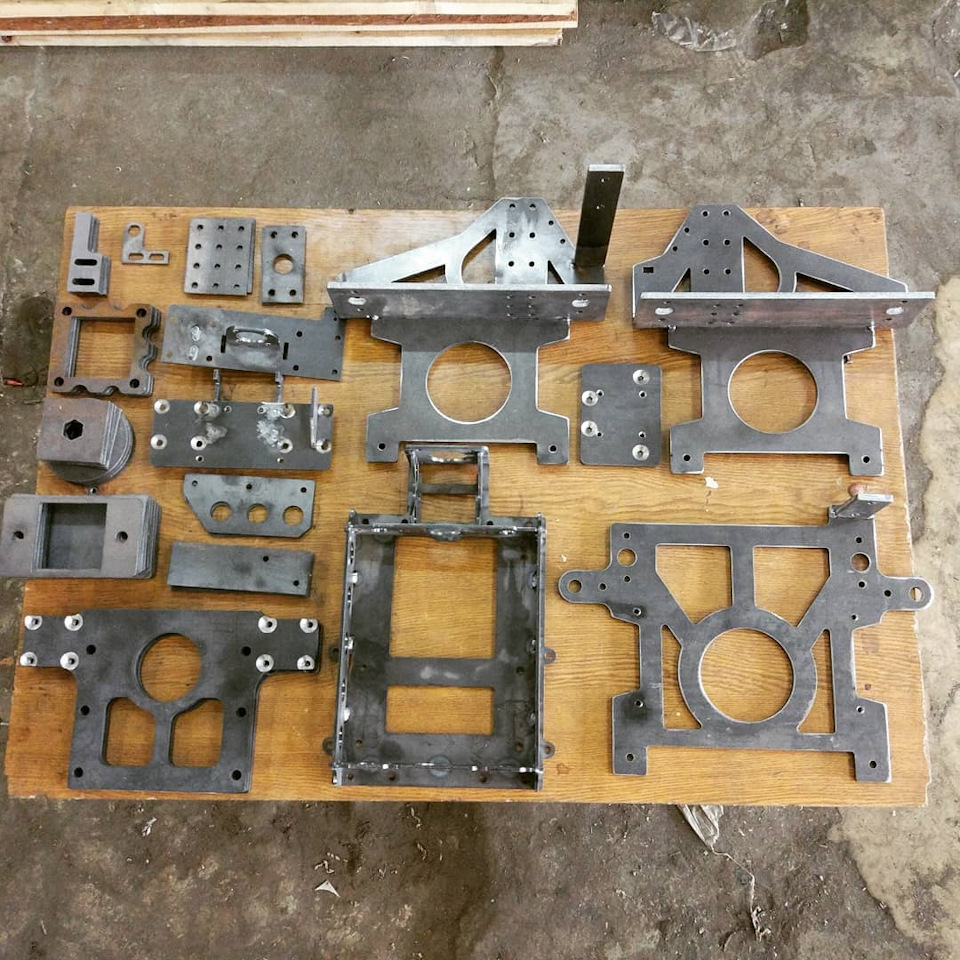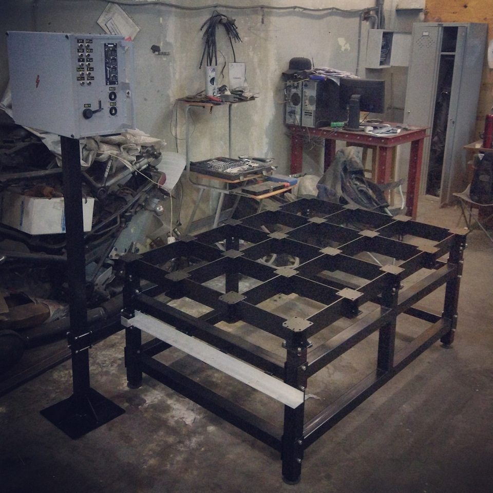 Начали со станины. Ее нужно было сделать максимально жесткой, но при этом разборной, чтобы станок можно было перевезти, не прибегая к услугам манипулятора.