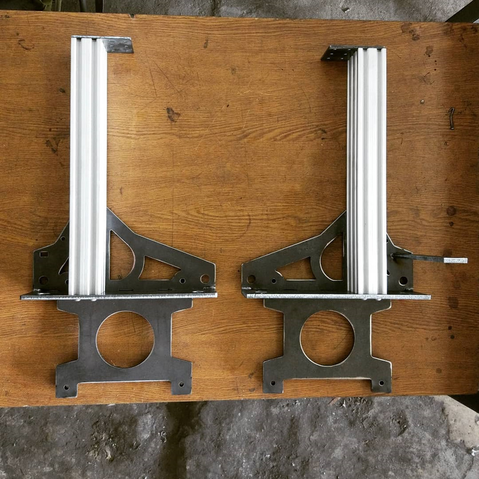 Конструкцию портала немного изменили. Поскольку направляющие будут находиться ниже уровня водяного поддона (так удобнее укладывать листы на рабочий стол), балку портала установили на стойки из экструдированого станочного профиля.