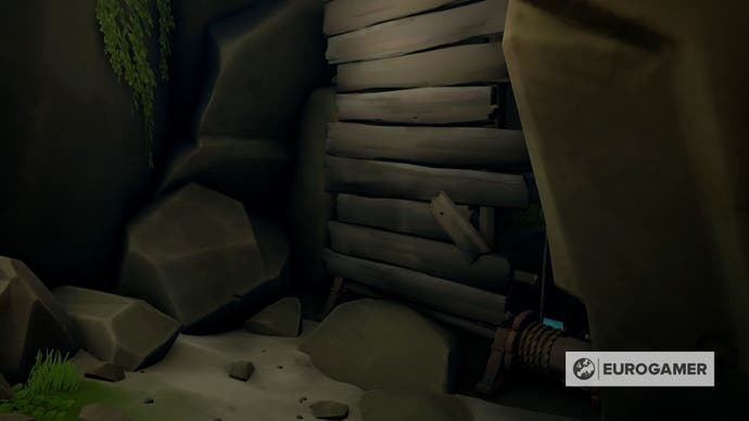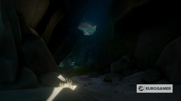 This will bring you into a cavern containing the rowing boat used for the Yer Boat commendation. Rather than climbing into the boat, head to your left where you’ll see a ladder leading to a small ledge.