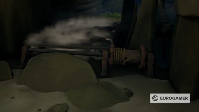 Opposite this raised bridge, you’ll find a capstan, which you can use to lower the bridge and continue down the path.