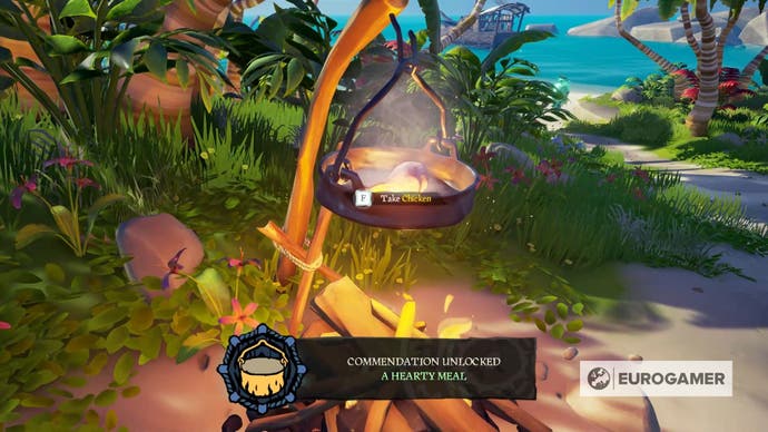 This commendation begins with you killing one of the chickens that can be found near the campfire that you awaken by at the beginning of Maiden Voyage. You can do this by using either your cutlass or flintlock pistol.