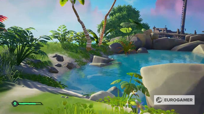 Following the path that begins in-between the two halves of the broken ship to its end will bring you to the top of the second island and there you’ll find a campsite.