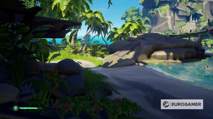 Вы можете увидеть только нос, торчащий из волн, но под водой, прямо под птицами, вы обнаружите целый затонувший галеон. Погружайтесь в воду и ищите, на самом дне обычно скрывается хотя бы один сундук. Правда, иногда можно найти намного больше интересного. Однажды нам удалось найти два сундука капитана и светящийся череп, которые удалось сдать за несколько тысяч золота. Это хороший заработок, так что следите за птицами.