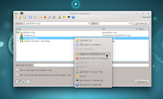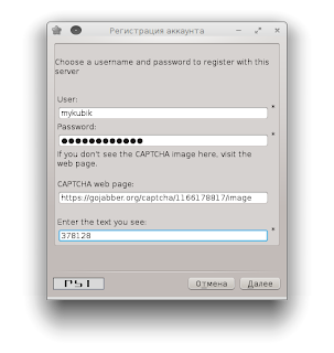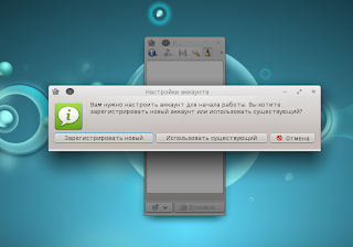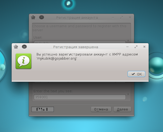 И так, открываем программу из КМеню-Приложения-Интернет и в появившемся окне регистрируем Jabber-аккаунт или вводим существующий. Список популярных Jabber-серверов.