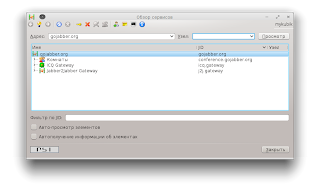 В появившемся окне мы видим, что с сервера gojabber.org доступны: