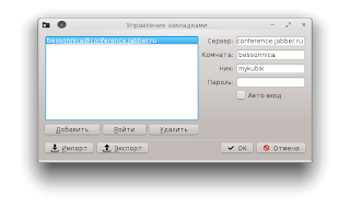 В закладках можно добавить/удалить конференции, активировать автовход.