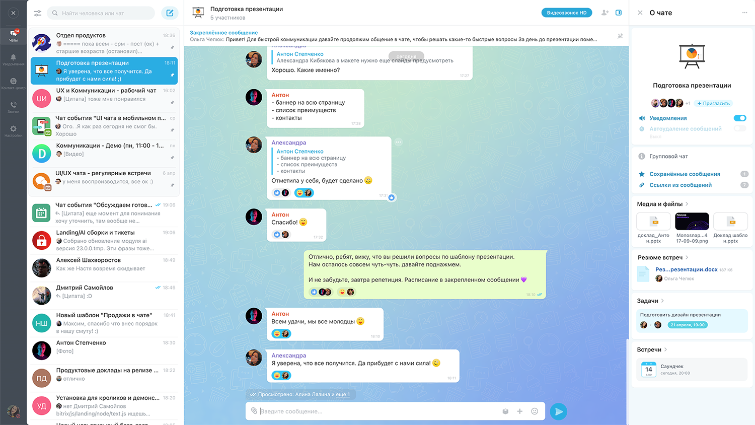 — Формальные разговоры в чате (обсуждаем в течение дня рабочие мелочи).