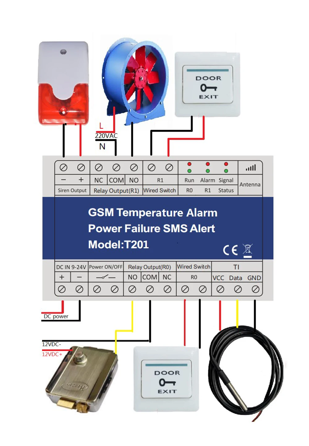 GSM sms-сигнализация T201 специально для удаленного мониторинга температуры на месте, состояния питания через беспроводную GSM сеть. Когда температура, статус мощности превысит высокий порог или низкое пороговое значение, он немедленно отправит SMS оповещения или вызов на 6 предустановленных мобильный телефон.