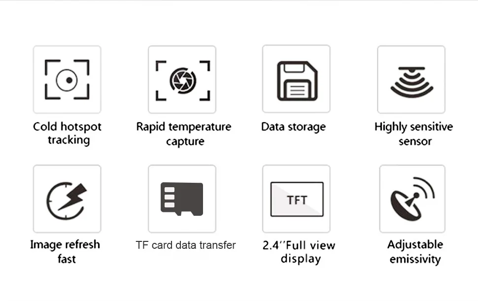 NF-521 имеет функцию термической визуализации и может отображать горячие и холодные пятна на экране, включив пользователей, чтобы более эффективно изменять температуру объекта. Он хотел быстро заблокировать целевую область. Стандартная карта памяти 8 ГБ может сохранить большое количество изображений и данных и генерировать высококачественные инфракрасные изображения, которые являются полезным инструментом для обслуживания неисправности.
