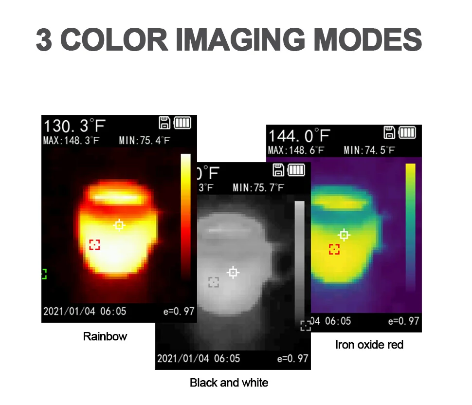 Тепловизор предоставляет восемь общих цветовых палитр, оптимизированных для различных сцен, чтобы облегчить пользователю наблюдение за различными целевыми объектами.