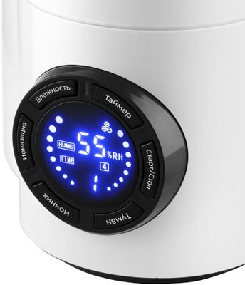 В увлажнителе KT-2801 можно установить целевую влажность воздуха 50– 95 % с шагом 5, время таймера — 1, 2, 4 или 8 часов и интенсивность тумана 1, 2 или 3.