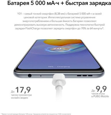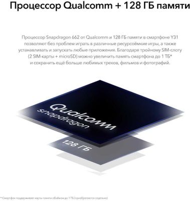 Фирма-производитель оставляет за собой право на внесение изменений в конструкцию, дизайн и комплектацию товара: Смартфон Vivo Y31 4/128Gb Black. Пожалуйста, сверяйте информацию о товаре с информацией на