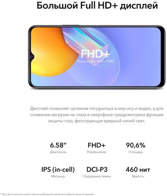 Здесь установлен IPS-дисплей с разрешением FHD+, который обеспечивает точное воспроизведение широкой палитры цветов. Его диагональ – 6,58 дюйма. Обновляется изображение на экране с частотой 60 Гц.