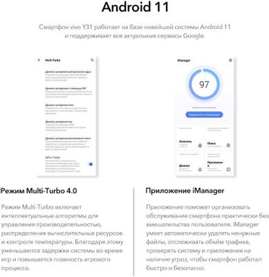 Инструкция по эксплуатации смартфона vivo Y31 4+64GB Голубой океан (V2036).